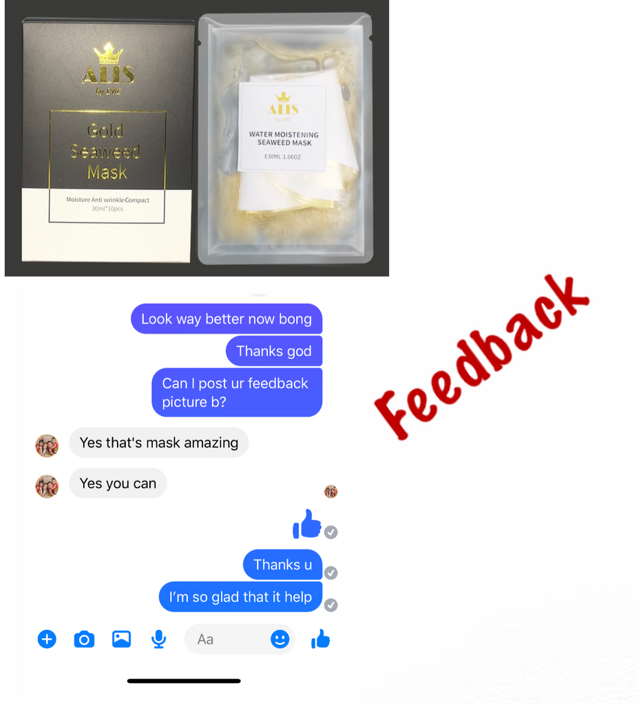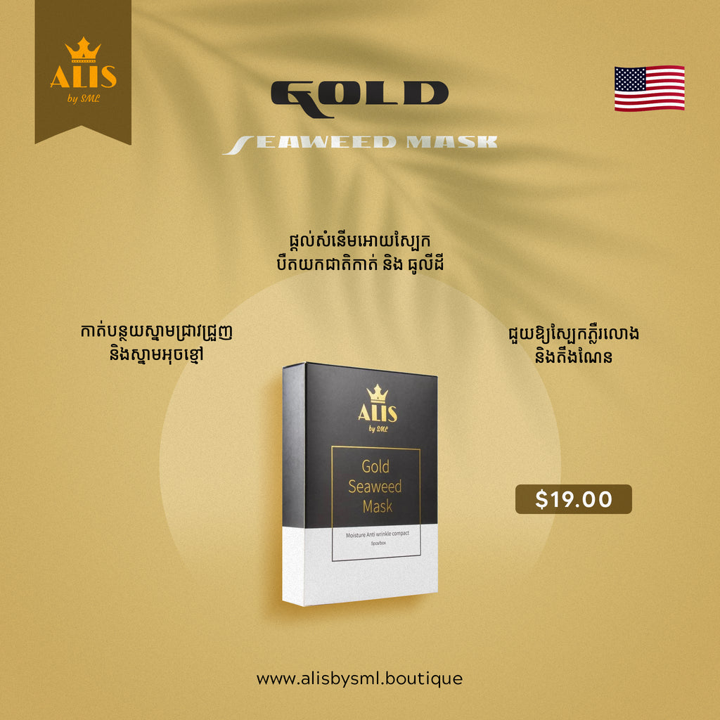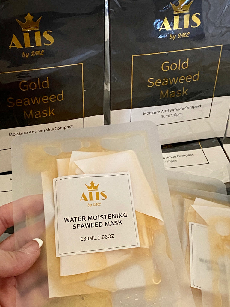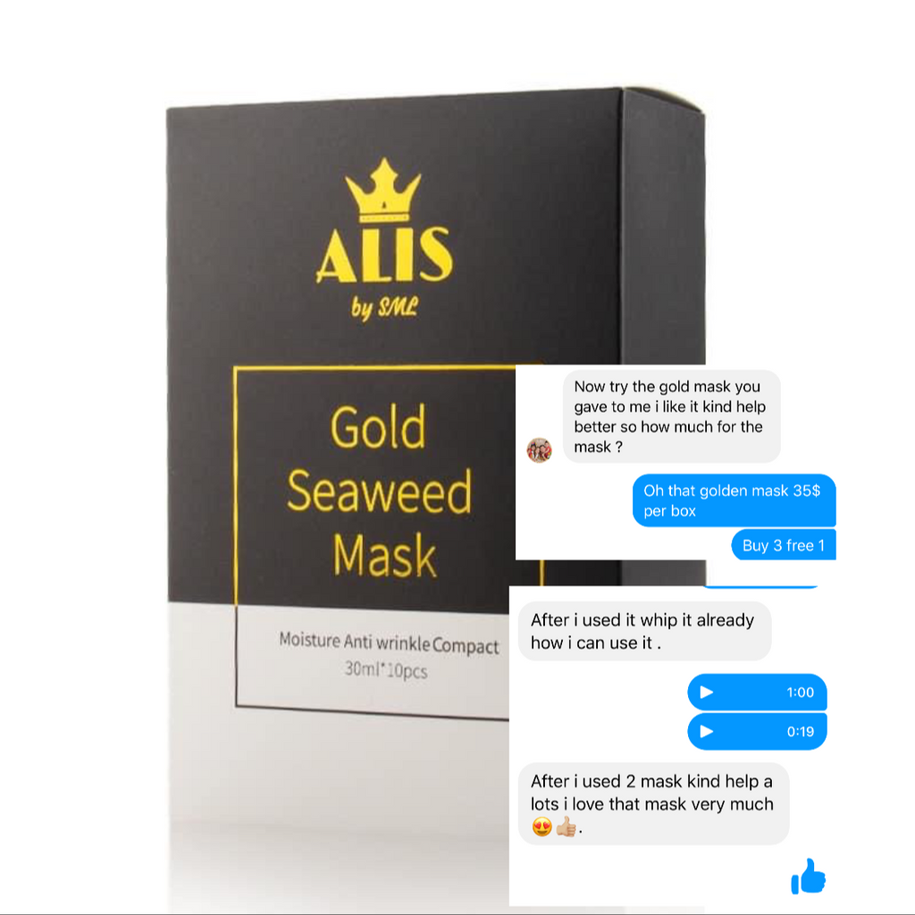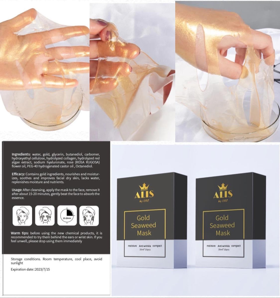 This facial Mask is made from natural gold seaweed ingredients which is help your skin glow and tighter also pores your skin , Moisture brightening your skin , reducing dark spots .