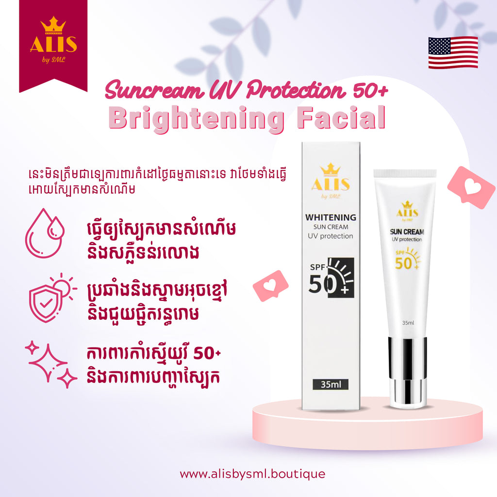 This is not just suncream but it also a whitening skincare product that help your skin conditioner younger and moisturizer smooth also can use as makeup base with us help your makeup last longer and absorb faster