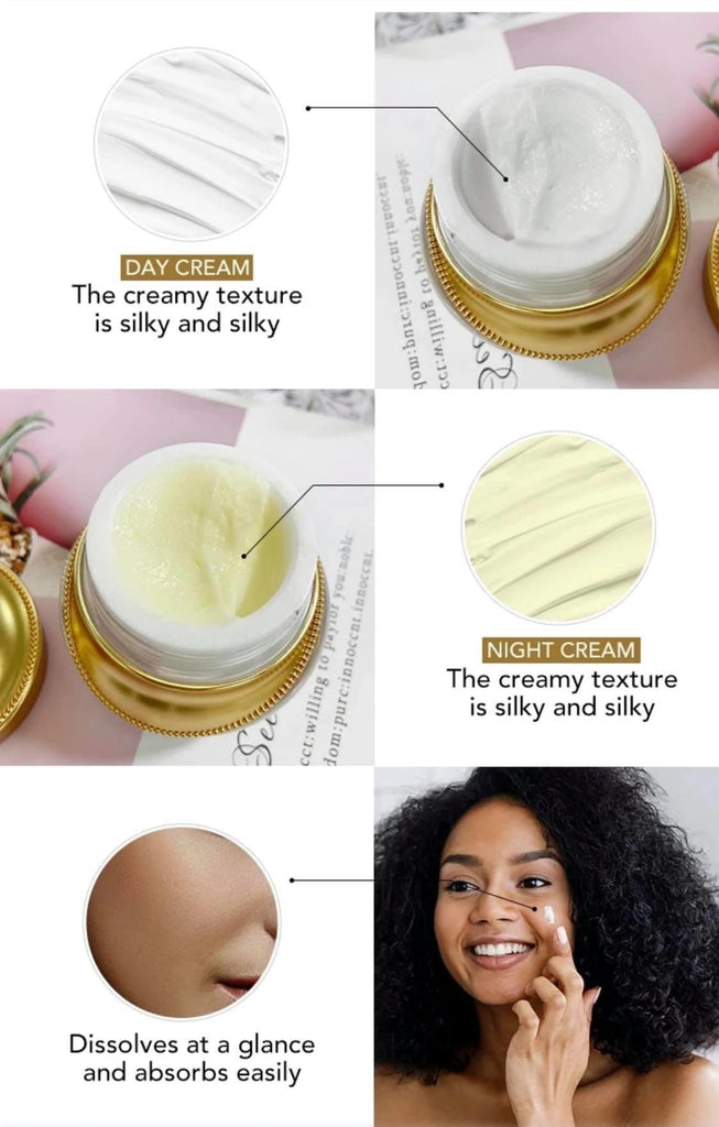 Note: Night cream material light yellow colour , Day cream material is white colour, Vitamin C serum is long bottle with serum glossy material